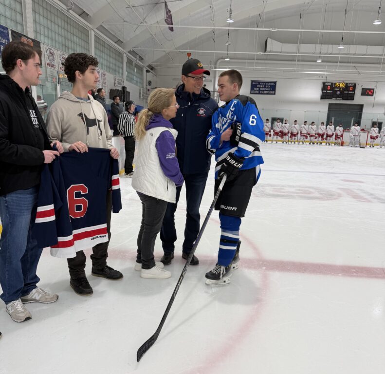 The 2025 Luke Roux Memorial Award, which includes a $500 scholarship, was presented to Connor McHugh from Hall High School, in recognition of their passion for the game of hockey and for life. The recipient is chosen by the program coaching staff.