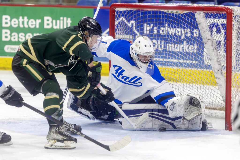 Senior forward Connor McHugh rewrote the record book like few players ever have. He finished his career as the program’s all-time leader in goals (66), assists (76), and points (142), while also setting the single-season goals record (31). At the same time, senior goaltender Matthew Bonner became the winningest goalie in program history (37) in just three seasons, while shattering the all-time saves record (1,718), and logging more minutes (2,905) than any goalie to wear a Hall jersey before him.