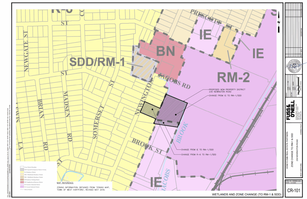 Town of West Hartford zoning map indicating 230 Newington Road and 60 Brook Street parcels