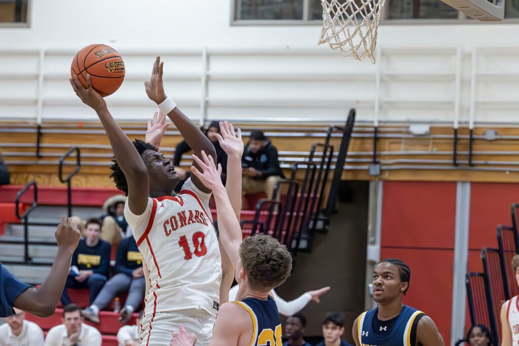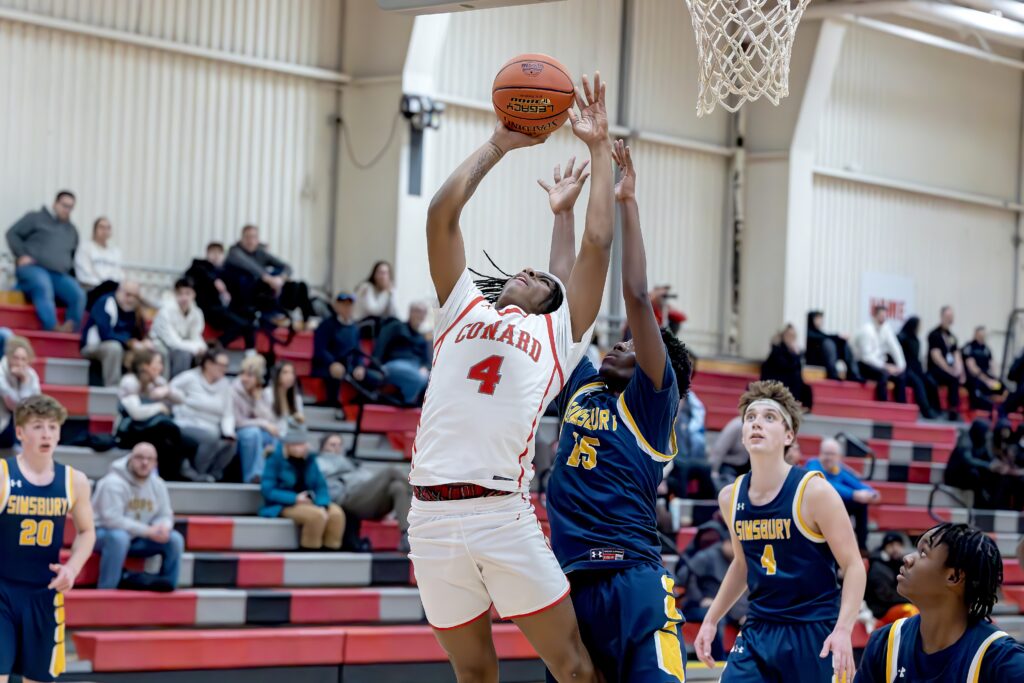Cory Brown is attempting a layup. Conard vs. Simsbury boys basketball. Jan. 27, 2026. Photo credit: Scott Sulkazi