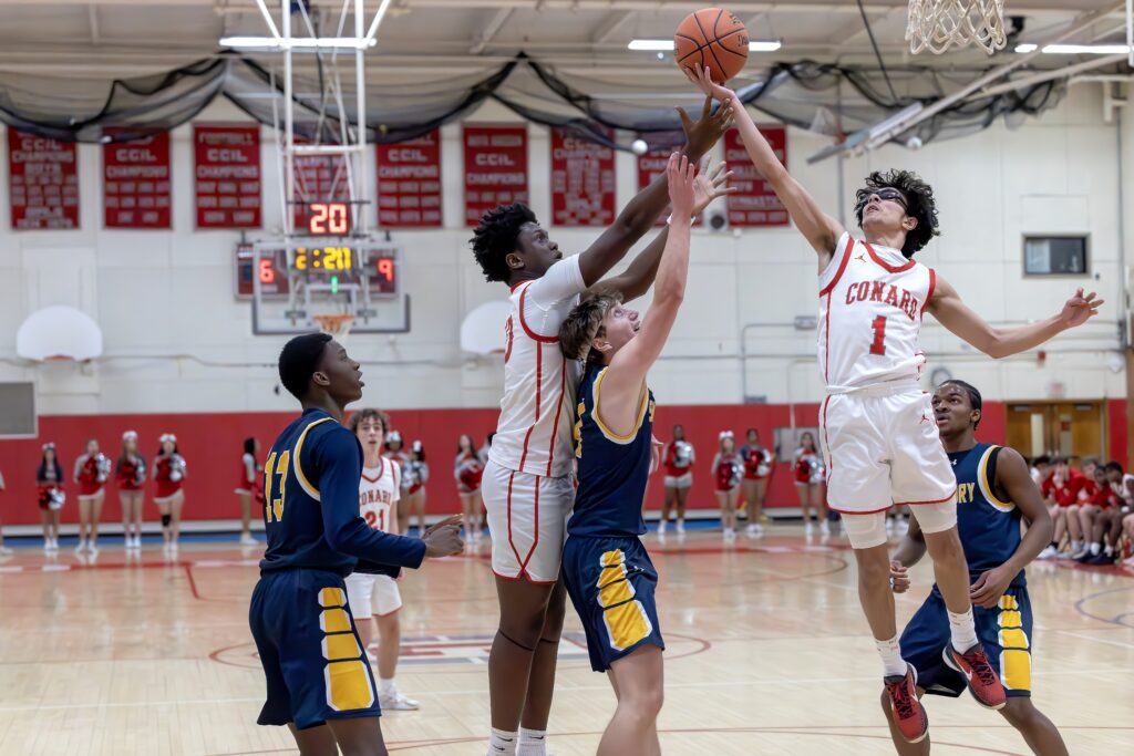 In the final period, James O’Sullivan drilled a 3-pointer to make it 45-42. Morris answered once again with a layup to bring Conard within one. Faenza provided a key defensive stop with a breakup on a Simsbury drive, but the Trojans executed late and held on for a 51-48 victory.
