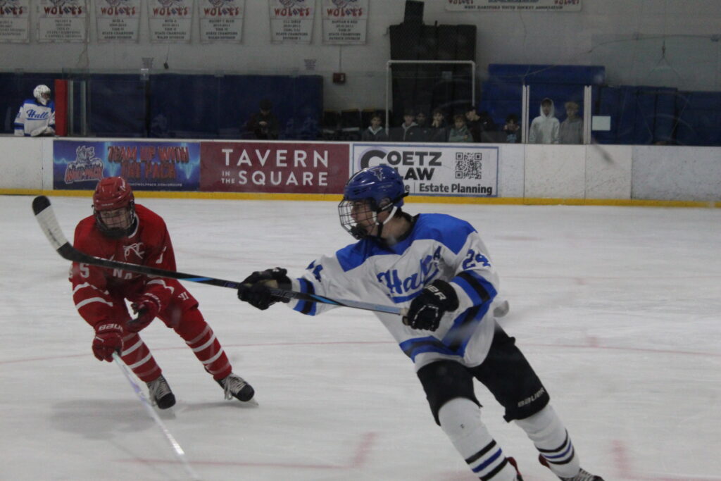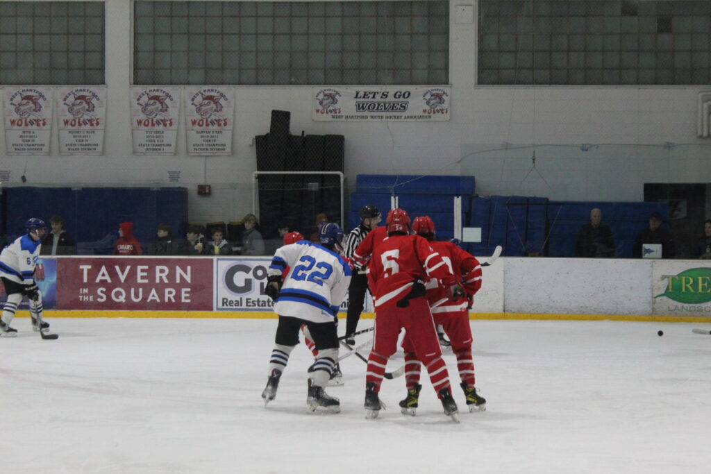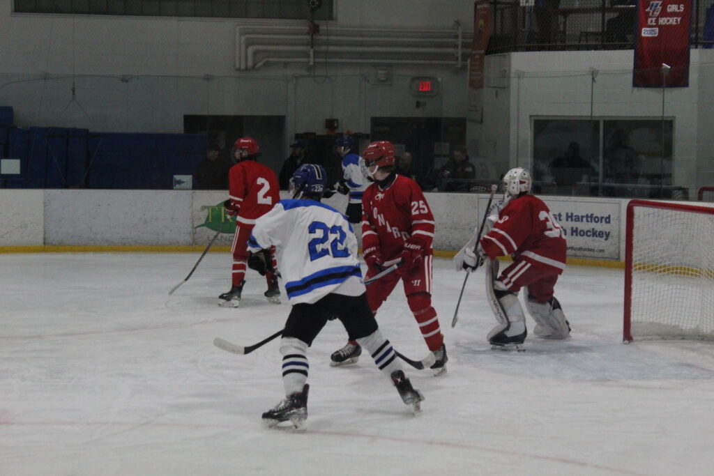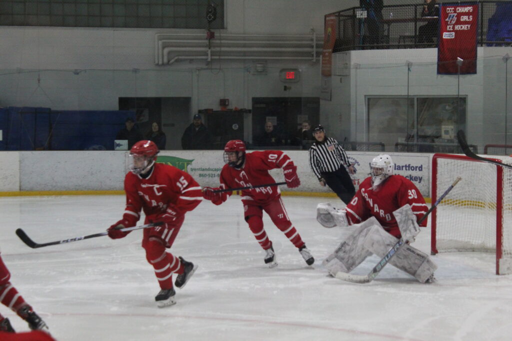 West Hartford’s Conard and Hall boys hockey teams met for the second time this season on Thursday, with the Red Wolves completing the sweep of their crosstown rivals with a 4-3 win.