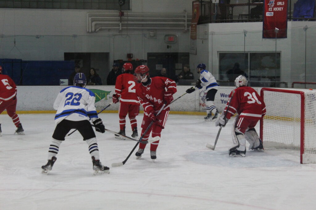 Hall’s hard work paid off, with Putnam making an off-the-post goal with 5 minutes left in the first period. The horn blared as they skated around, celebrating the then-tied score of 1-1. Both teams wasted no time in resuming the heated rivalry, with No. 17 for Hall, Liam Flemming, taking a shot on goal, only to yet again be struck down byEmery. Bonner repaid the favor by blocking an open goal, dismantling Conard’s possible second goal, with tensions rising as the period inched towards a close.