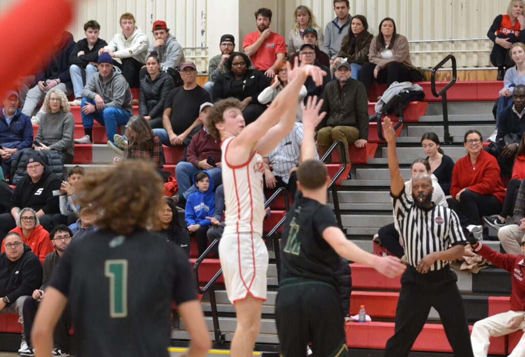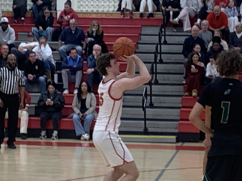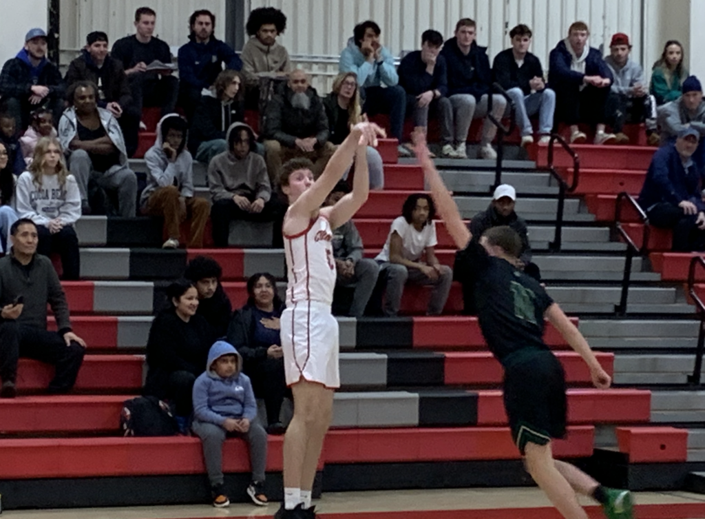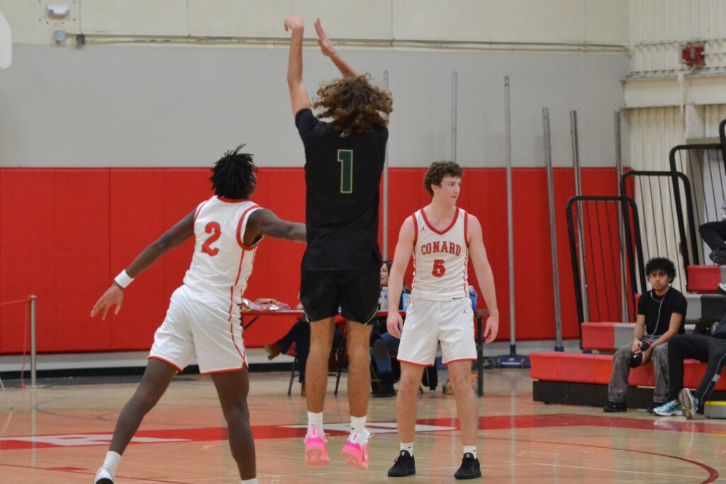 Aidan Fox drains a second half 3 for Conard. Conard vs. Enfield boys basketball. Dec. 18, 2025. Photo credit: Paul Palmer