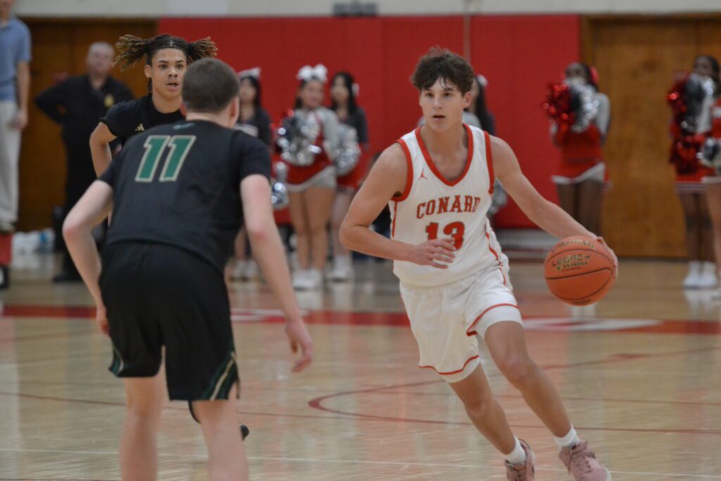Aidan Fox overcame a slow start to score a game high 20 points for Conard. Conard vs. Enfield boys basketball. Dec. 18, 2025. Photo credit: Paul Palmer