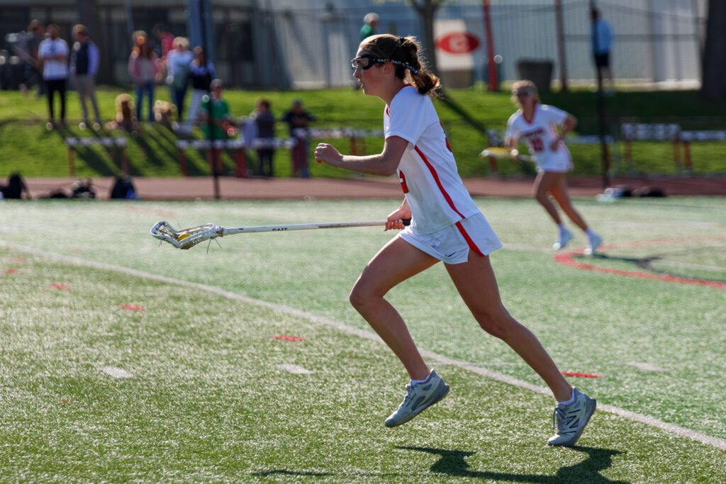 Junior Paige Sweeney (5), taking the ball up the field. Conard vs. Avon girls lacrosse. April 23, 2026. Photo credit: Cole Schweiger