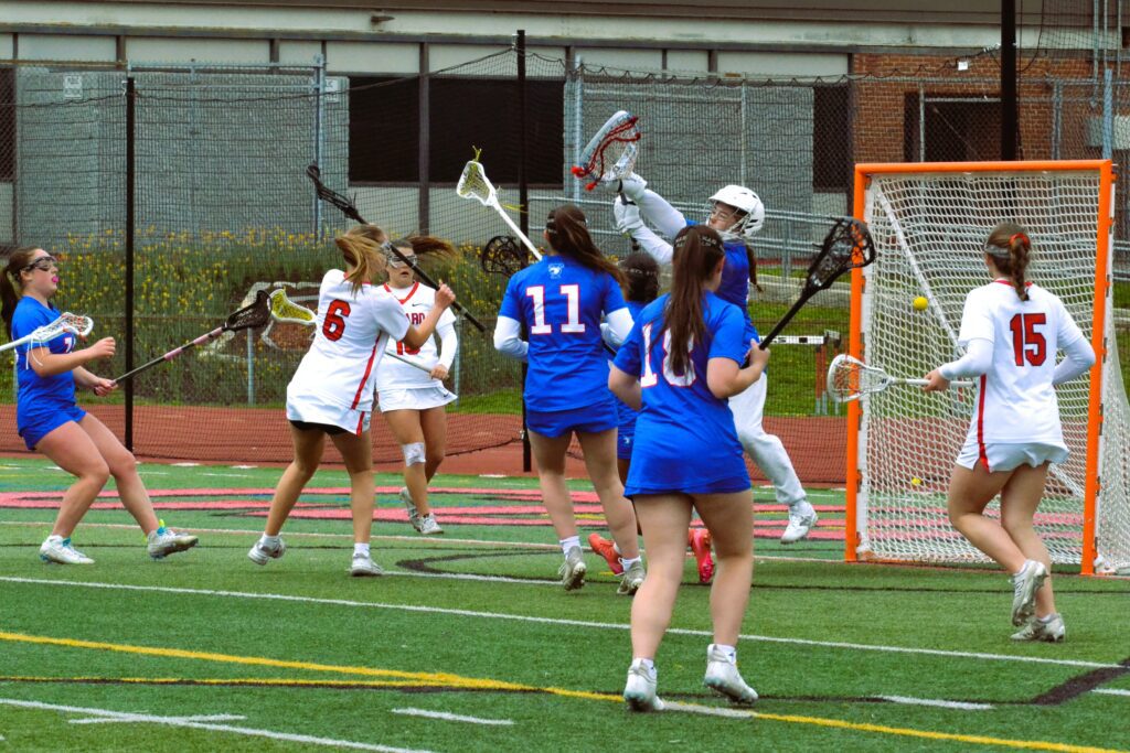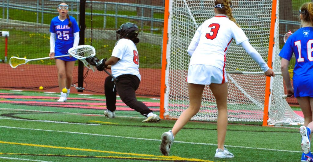 Tolland goalie Grace Nash can’t stop the Conard shot. Conard vs. Tolland girls lacrosse. April 25, 2026. Photo credit: Paul Palmer