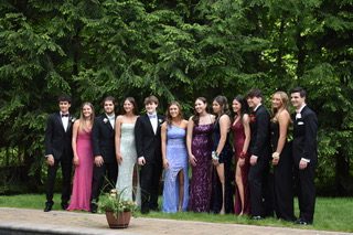 The weather was a bit cloudy, but it was neither too warm nor too chilly for traditional prom attire of strappy long gowns and tuxes as students and their guests gathered for outdoor photo sessions at homes – particularly in the Wood Pond neighborhood, parks, and other scenic locations throughout West Hartford before the official gala began.