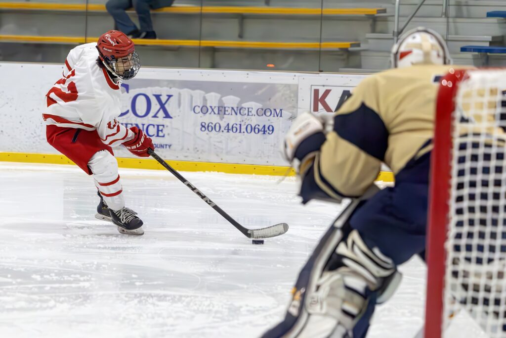 Jack Eisenberg is trying to score. Conard vs. Newington boys hockey. Jan. 7, 2026. Photo credit: Scott Sulkazi