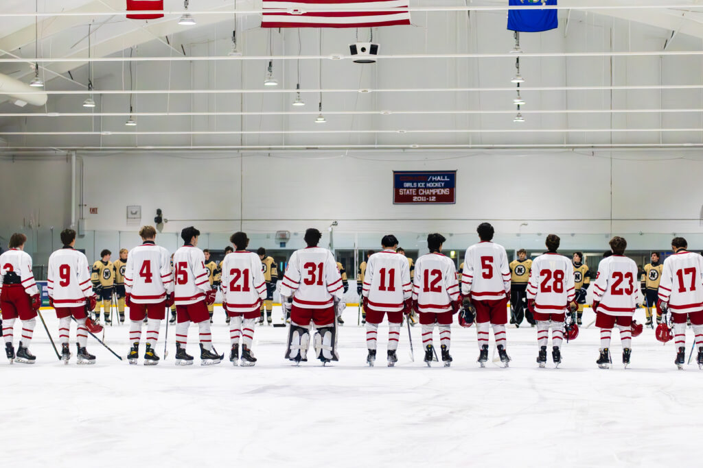 Conard during the National Anthem. Conard vs. Newington boys hockey. Jan. 7, 2026. Photo credit: Savannah Cote