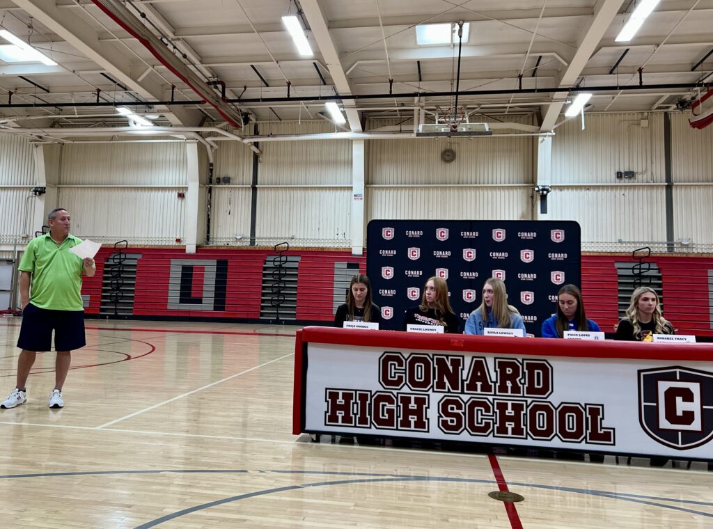With family, friends, teammates, and coaches in attendance, five members of Conard High School’s Class of 2026 participated in College Commitment Day on Wednesday, Nov. 19, 2025, officially indicating their plans to continue their sports at the collegiate level.