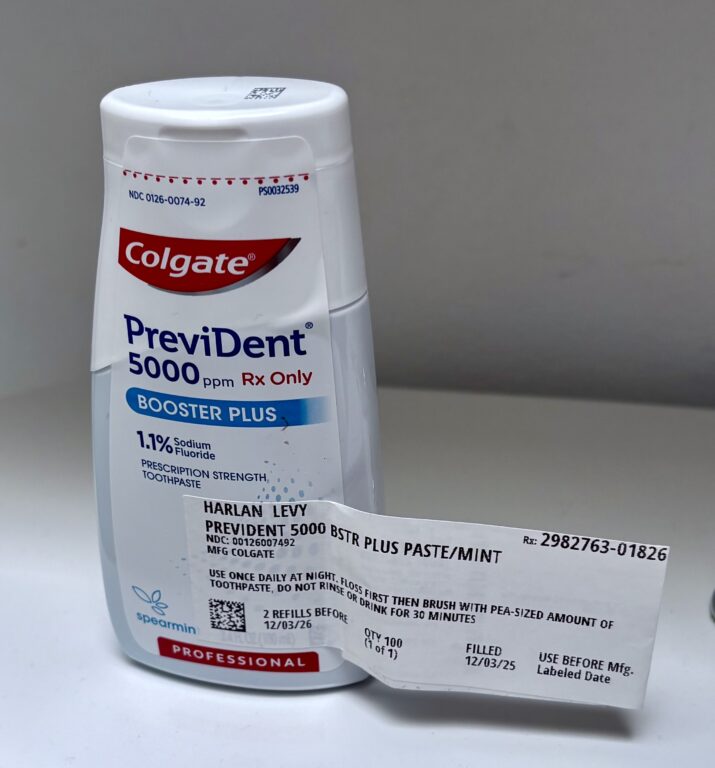 PreViDent is my extra effective prescription-only tooth paste, costing $47. My ConnectiCare insurance doesn’t cover it. Photo credit: Harlan Levy