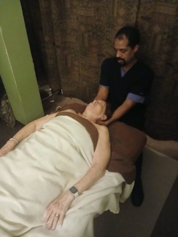 Healing Hands masseur William gives my wife a massage last week. Courtesy of Harlan Levy