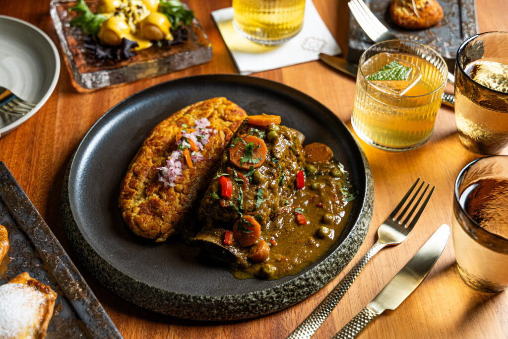 Seco de Tira Con Tacu Tacu and cocktails at Coracora. Photo credit: Lisa Nichols, Bread & Beast