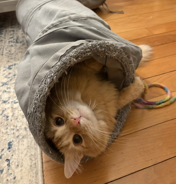 “Granger was adopted as a kitten through the local rescue ‘Animal Friends of Connecticut,'” said Hanse in an email. “He is truly the Golden Retriever of cats, and the sweetest little orange man in the world. He loves greeting his humans at the door, snuggling like a teddy bear, playing fetch with hair ties and fresh green beans, giving paw, and proudly wearing his bow tie collars every day like a dapper little gentleman!”