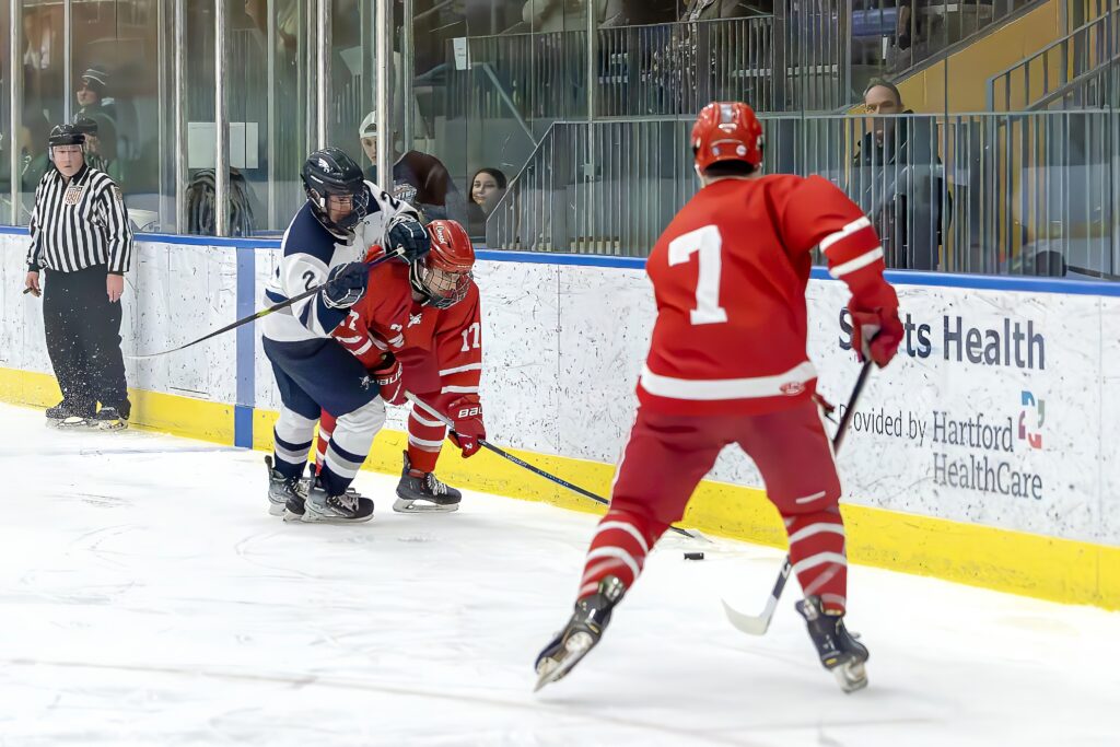 Conard and Wethersfield, the No. 3 seed, looked evenly matched throughout the opening period, with both sides creating chances but struggling to break down the defense. The only goal of the period came from Conard’s Dylan Smith, who scored an assisted tally to give the Red Wolves a 1-0 lead heading into the first intermission. The assist was by Torin McGoldrick.