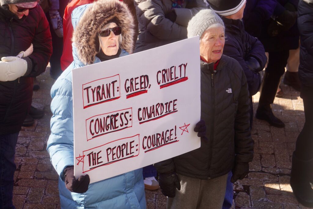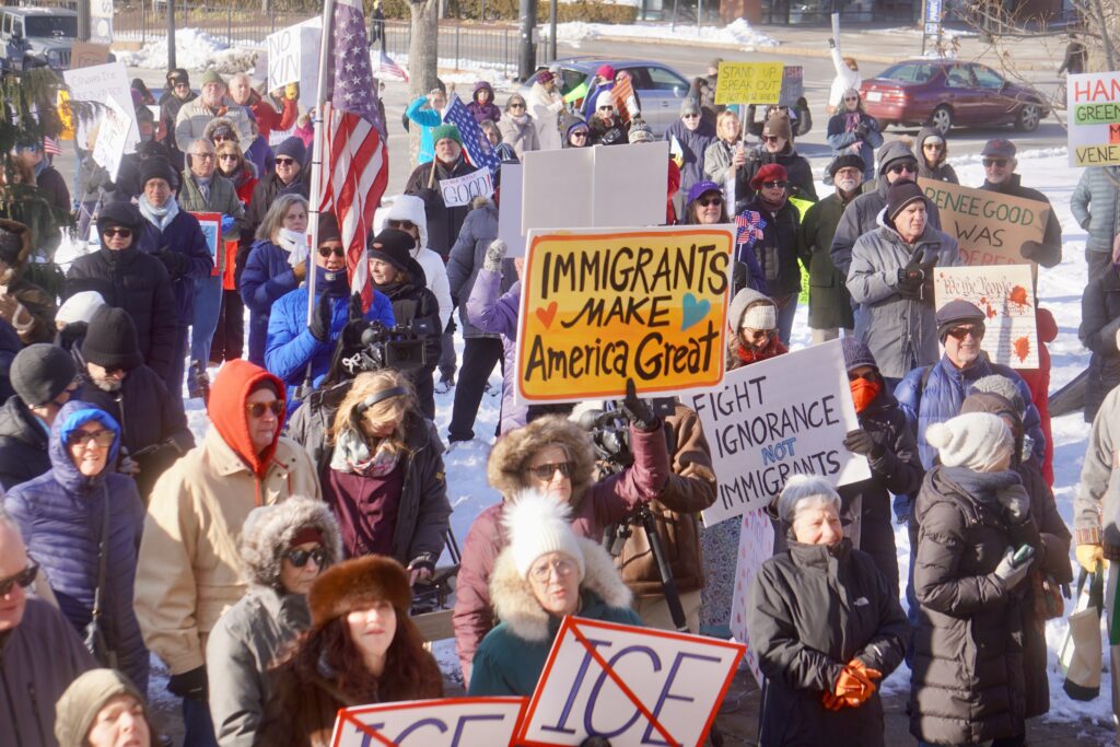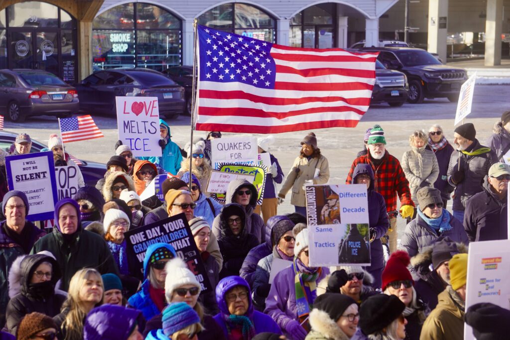 McGinnis urged the crowd not to remain silent, and to stand with the people of Minnesota and other communities that have been threatened. “Today, we’re loud, we’re visible, and we’re united,” she said. “Democracy doesn’t defend itself. We do.”