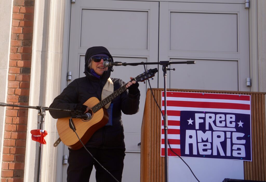 There was inspirational music, and former West Hartford Poet Laureate Ginny Connors read Amanda Gorman’s poem “Renee Nicole Good,” a tribute to the 37-year-old mother who was shot and killed in her car by an ICE agent on Jan. 7.