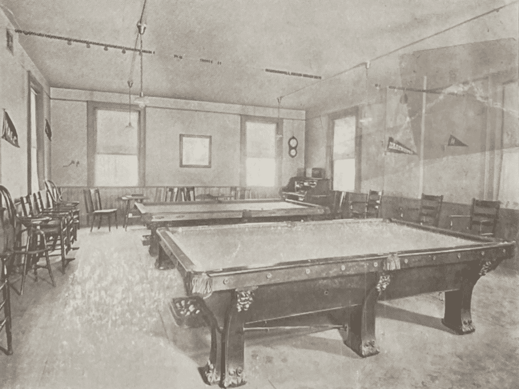 Billiards tables in the YMCA rooms. Photo courtesy of Noah Webster House & West Hartford Historical Society
