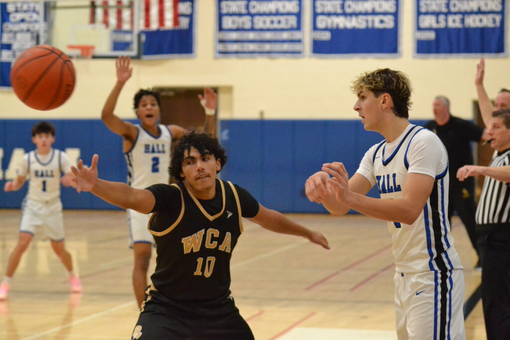 On Monday, Hall lost its first game of the season – against Springfield (MA) Central – and Tuesday they were without captains Aiden Delaney and Eli Kramer who were both out with injuries.