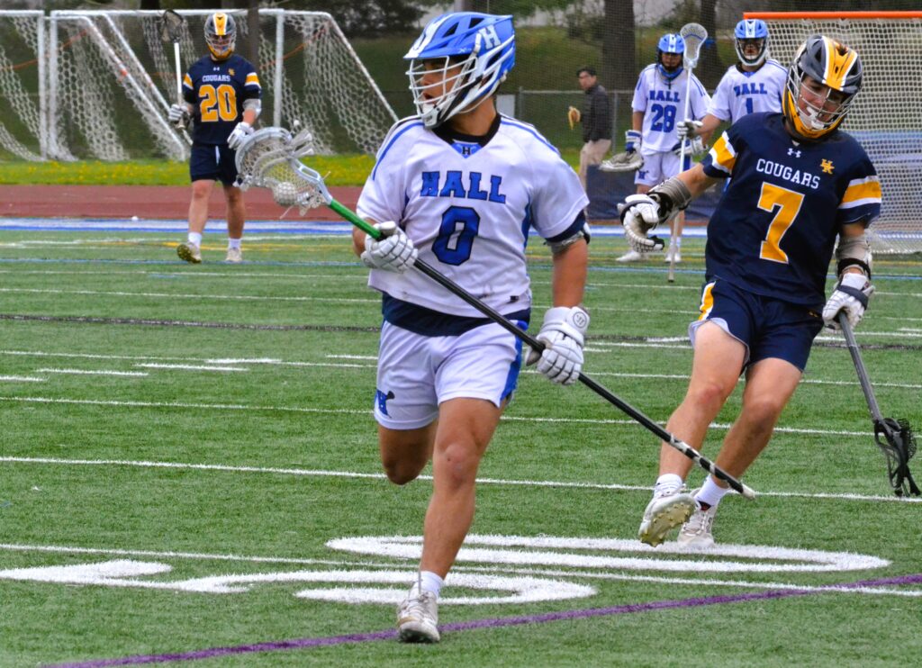 “We got out hustled,” said Hall head coach Keith Blum after the game. He was not kidding. The Cougars outplayed, outhustled, and outmuscled Hall at both ends of the field. It started in the face-off circle where Joshua Firth won seven of eight for H/K in the first quarter and the Cougars scored on each.