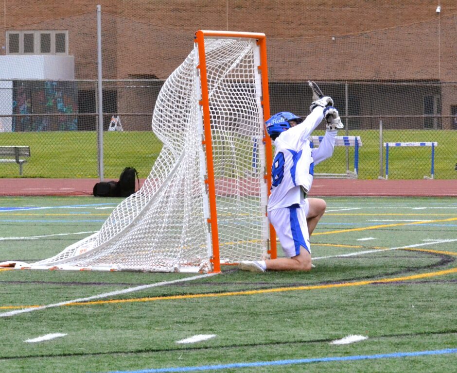 Hall came out stronger early in the second half, taking the opening face-off and getting a shot off that hit the post. H/K then went back into its offensive set and Savoy would score the first of his back-to-back goals at 8:06. Both cane from about 15 yards out with no defender between Savoy and the goal. The first goal came when he shot from the left to the right and the second about 3:00 later came from nearly the same spot, going high to the right, this time with a laser.