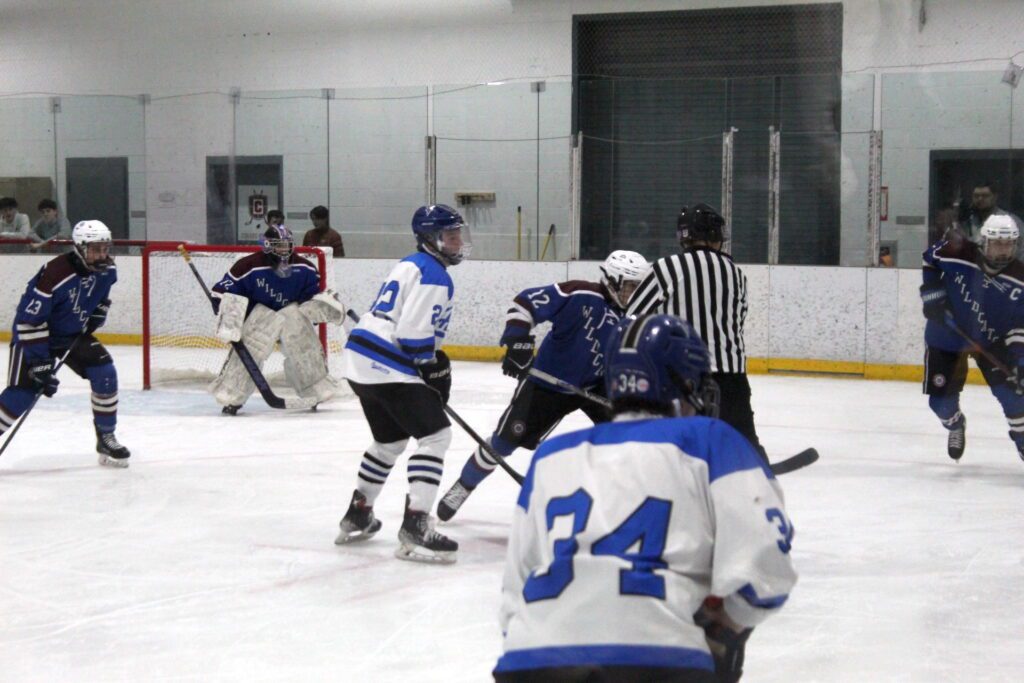 Hall’s defense line was broken up as Thomas Leahy (26) was boxed for two minutes, with a penalty for tripping. Charles DeBassio (18) took the lead as he raced across the ice, following the puck. With a quick 50 seconds left of the Wildcats penalty, McHugh scored another power-play goal for Hall, tying the score with barely six minutes left of the game.