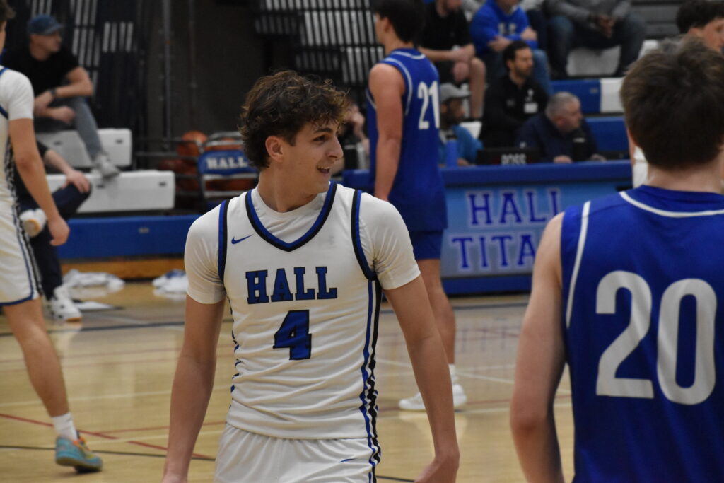 After two free throws cut Hall’s lead to one, Timmy O’Brien quickly responded by knocking down a vital 3-pointer to keep the Titans ahead. On the next possession, O’Brien stole the ball from a Fairfield Ludlowe player, brought it up the court, and found Delaney, who did what he does best and hit another 3-pointer. This sequence pushed Hall’s lead to 25-18 and reignited the Titans’ offense.