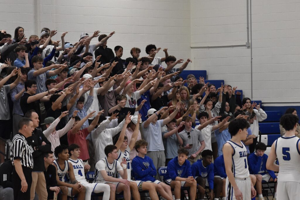 Hall’s student section bringing the energy. CIAC boys basketball Division II, second round. March 9, 2026. Photo credit: Brooklynn Knowles