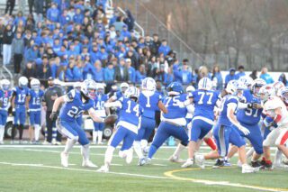 Quinn O’Neill (20) hands to Spencer Boucher Zazzaro (14) out of the wildcat formation