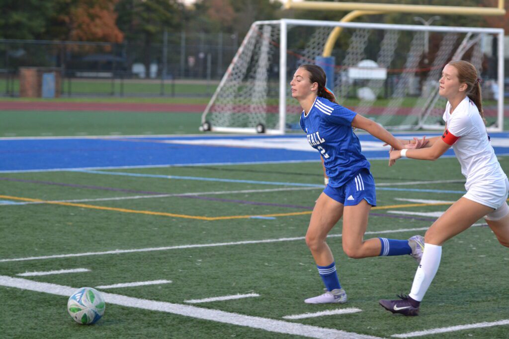 Hall flipped the script to start the second half, bringing that much-sought-after intensity and created some offense. Avon’s backline stood strong though, and kept the Titans off the board. Hall’s defense was also playing a strong half with Avon often looking to use the long ball or through pass to get past them. Seniors Sienna Calabro, Katie Hurlock, and Anya Leshem combined with Katherine Momina and Alexa Reilly to deny a second goal. Leshem also gave Hall a big boost on offense with her long runs up the sideline to get the ball into dangerous areas.