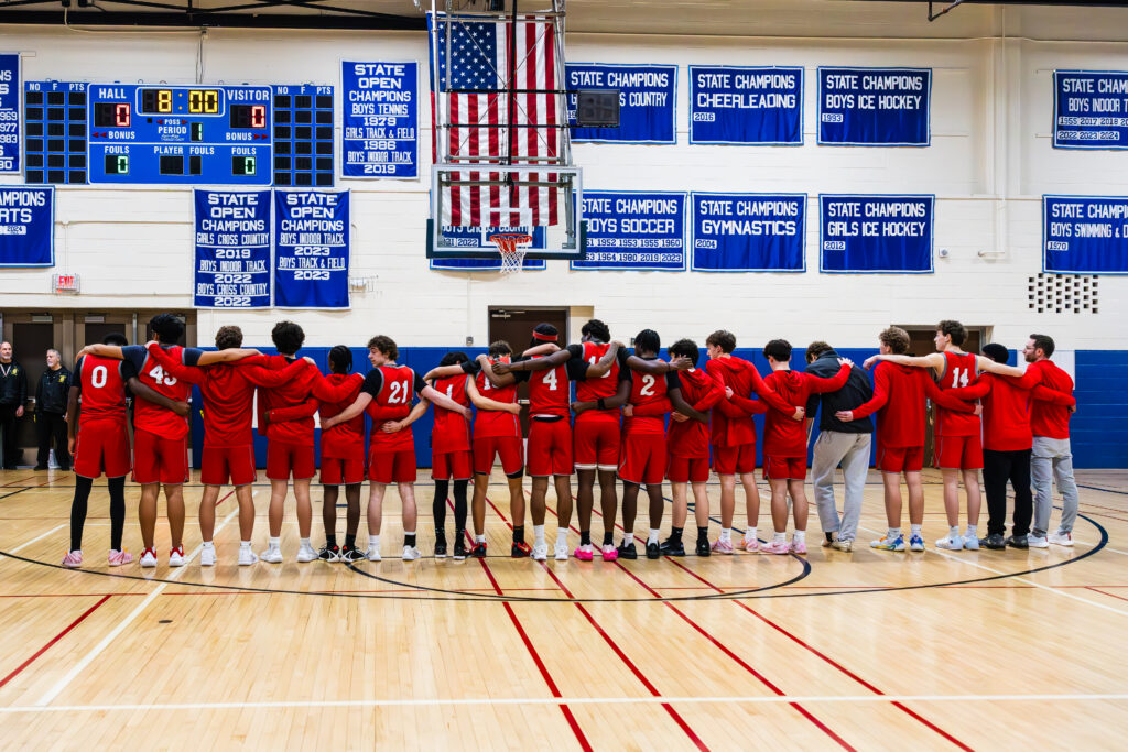 The Titans are getting pumped up. Hall vs. Conard boys basketball. Jan. 22, 2026. Photo credit: Savannah Cote