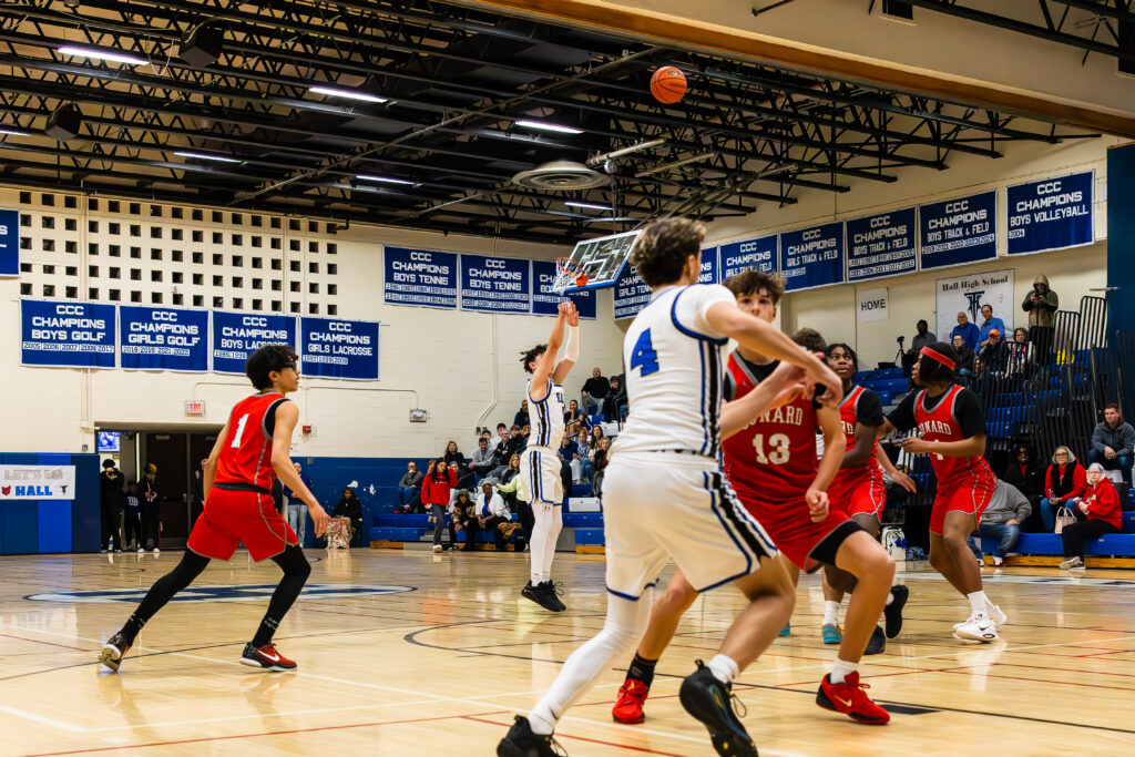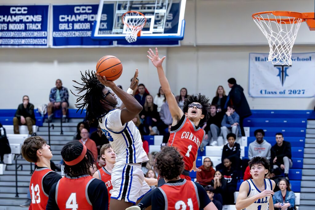 Crosstown West Hartford rivals Conard and Hall boys boys basketball teams faced off Thursday night.