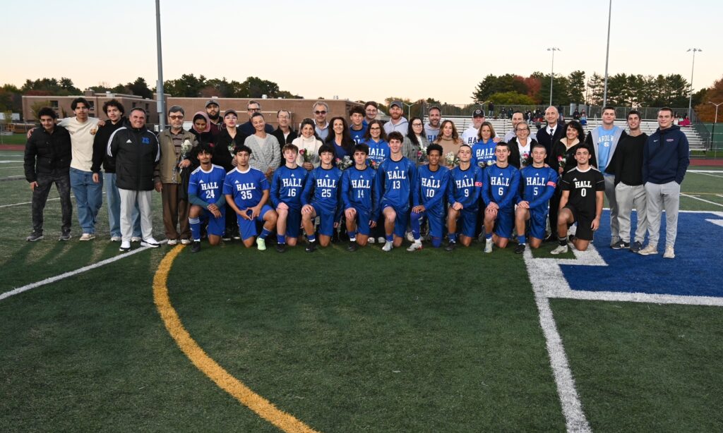 On Friday night, Hall boys varsity soccer honored their seniors and what they have done for this program – before engaging in a heated match against Lewis Mills at 6 p.m that ended in a 2-1 loss for the Titans.