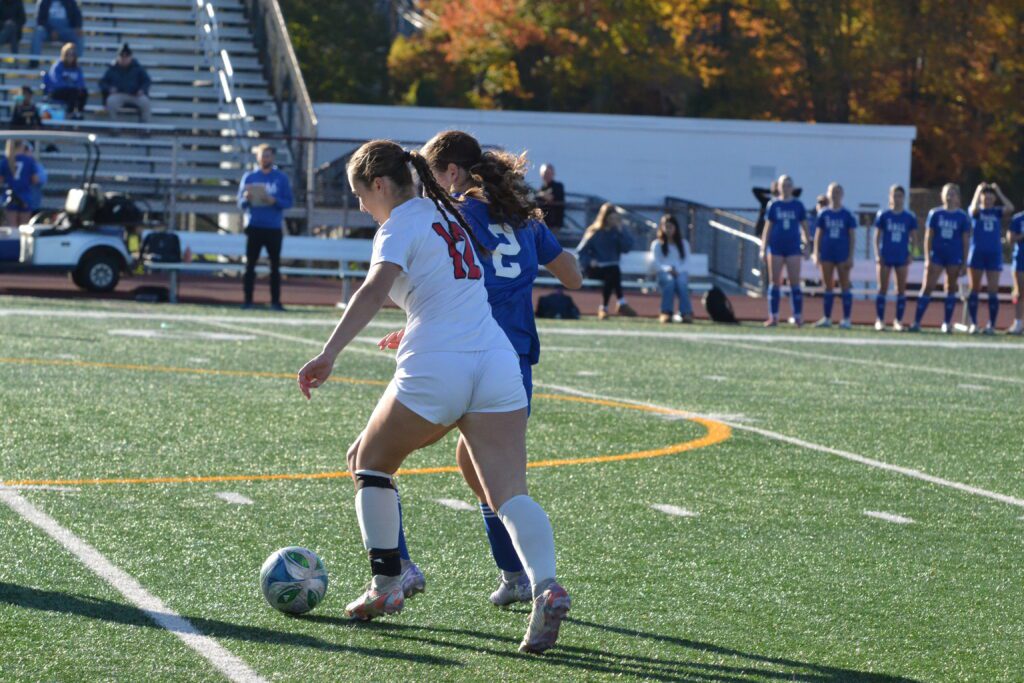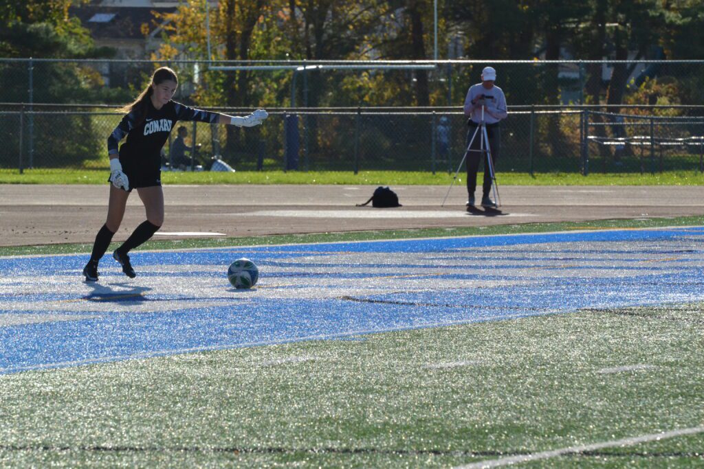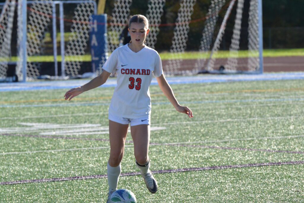 Leah Berey had a strong game on both sides of the ball. Hall vs. Conard girls soccer. Oct. 21, 2025. Photo credit: Paul Palmer