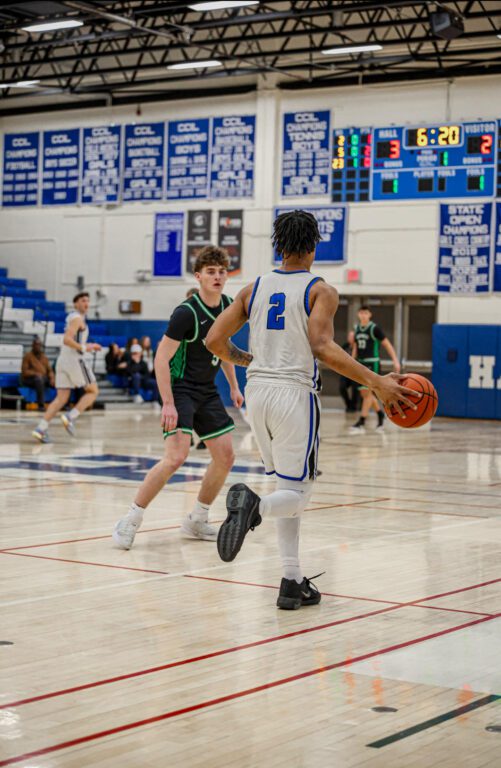 Senior Aiden Delaney put the first two points on the board with an easy layup, followed by one out of two free throws from teammate Isaiah Gaston, allowing Hall to establish an early presence on the scoreboard.