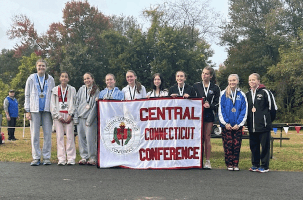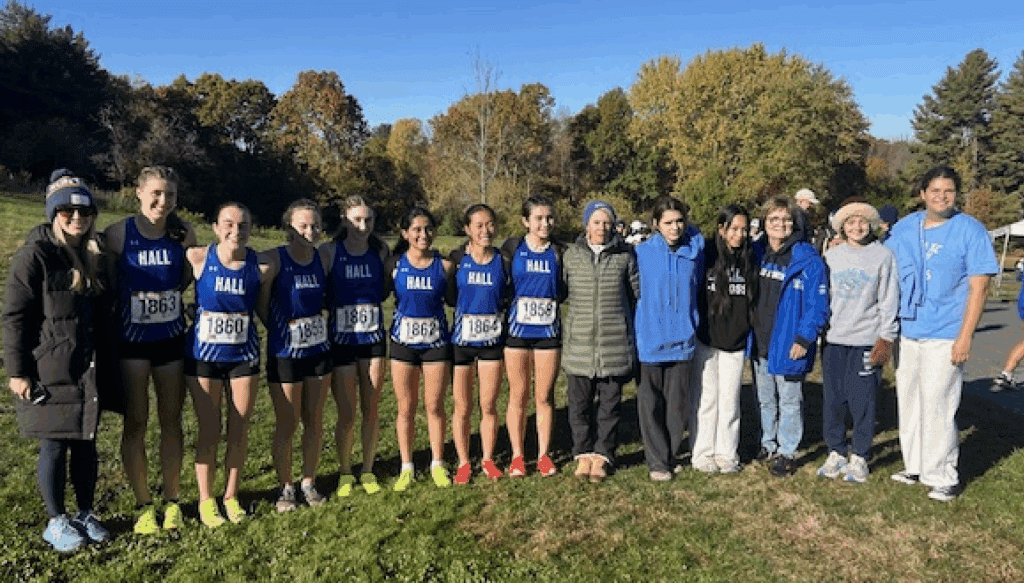 The Hall girls cross country team finished tied with Farmington and Simsbury for first place in the conference championship, and finished fourth at the Class L race on Oct. 25.