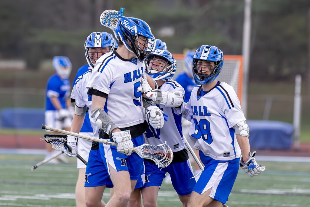 Hall celebrates a goal. Hall vs. Southington boys lacrosse. April 20, 2026. Photo credit: Scott Sulkazi