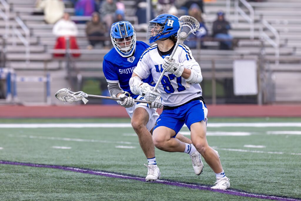 Zachary Debin on offense. Hall vs. Southington boys lacrosse. April 20, 2026. Photo credit: Scott Sulkazi