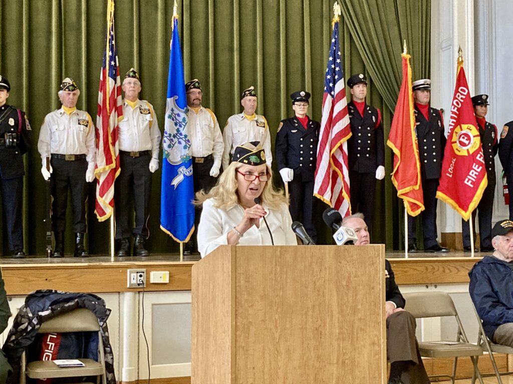 Heidi-Anne Mooney, past Commander of West Hartford’s American Legion Hayes-Velhage Post 96, opened the ceremony by expressing her gratitude to all men and women who have served in the country’s armed forces, and thanking their families for their support.