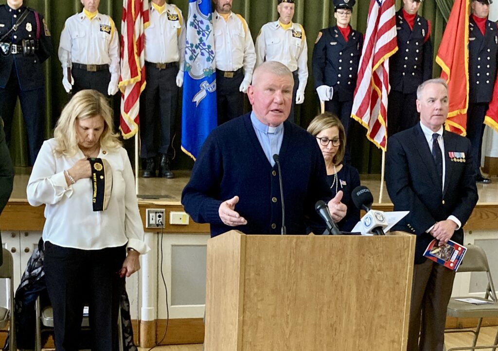 The next speaker, state Sen. Derek Slap, also a West Hartford resident, described Giammatteo as a model for others in service, and a hero. Returning from a recent family trip to Austria, a country that had been an empire centuries ago, Slap was reminded that nothing lasts forever and that our democracy is fragile. While the public has been losing faith in other institutions however, the public still strongly believes in our military and veterans. “I’m so grateful for our veterans,” said Slap, “not only for what they have done, but what they represent for us going forward – to show us how we can come together for our community.”