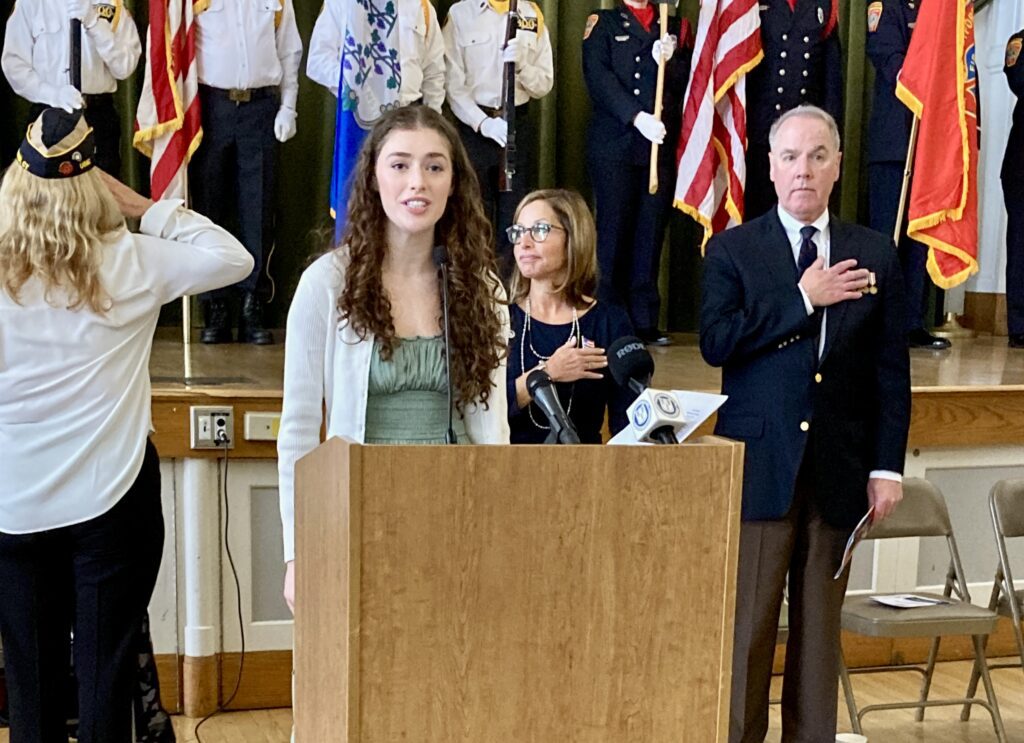 Conard senior Delia Canary sings the National Anthem. West Hartford Veterans Day ceremony. Nov. 11, 2025. Photo credit: Ted Newton