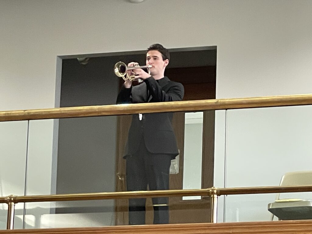 Conard senior Henry Drolet sounds TAPS. West Hartford Veterans Day ceremony. Nov. 11, 2025. Courtesy photo