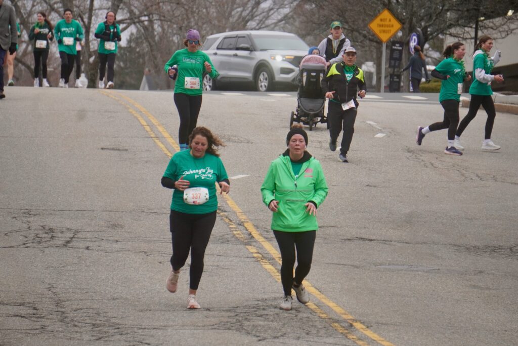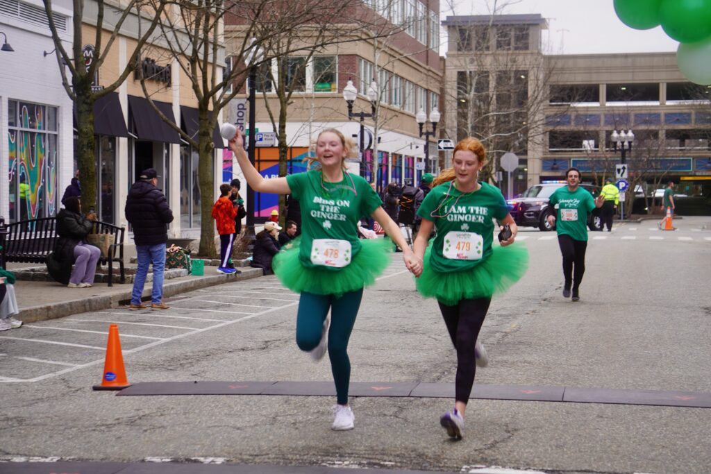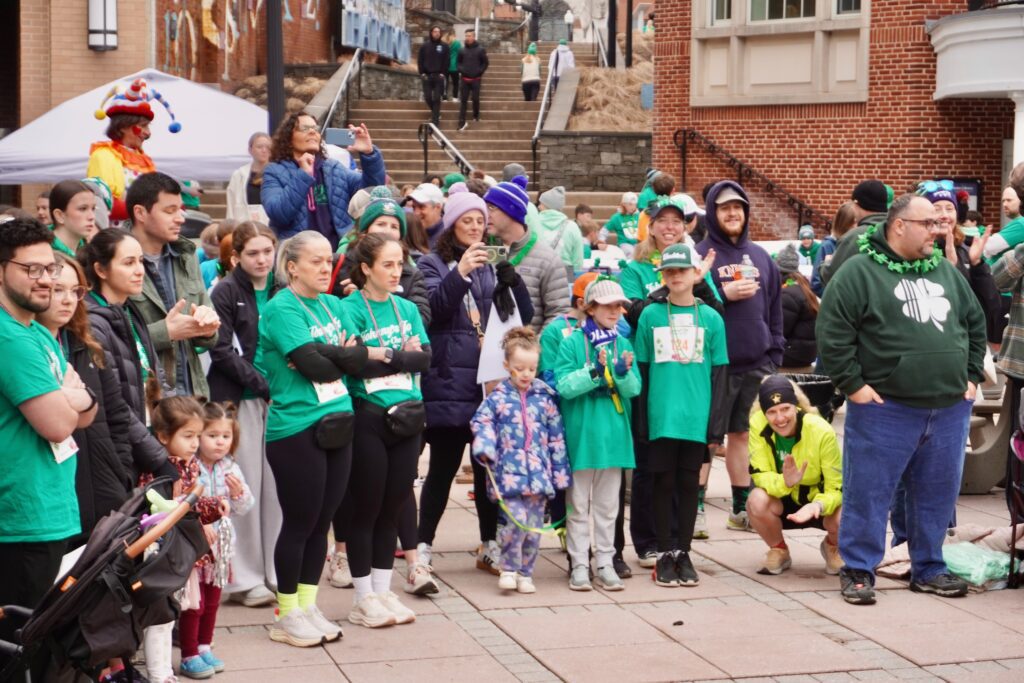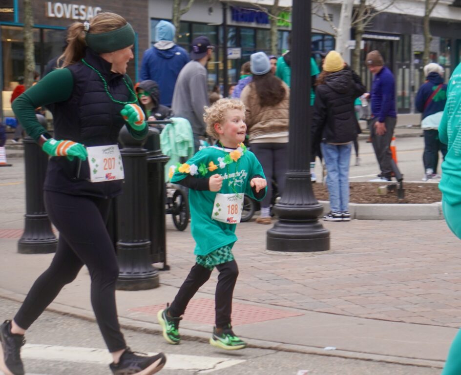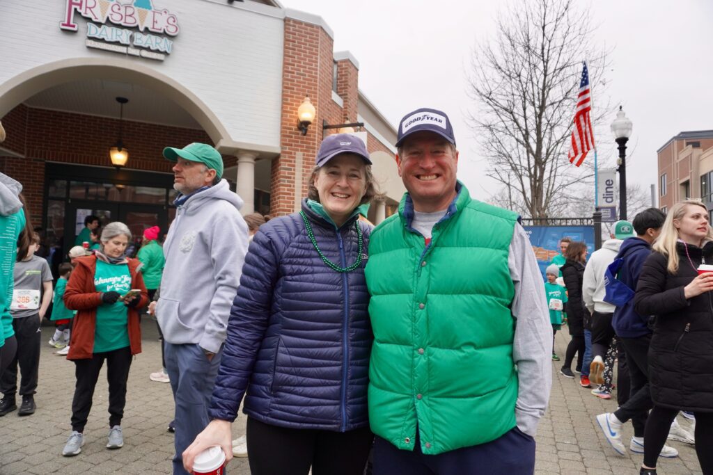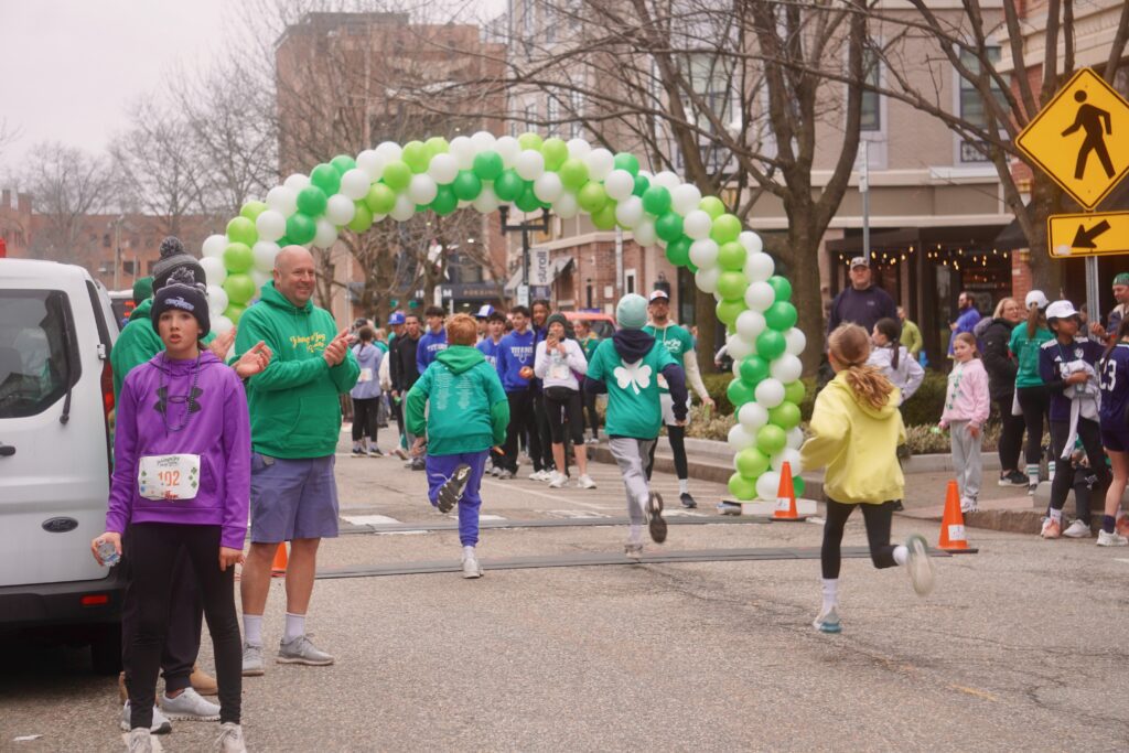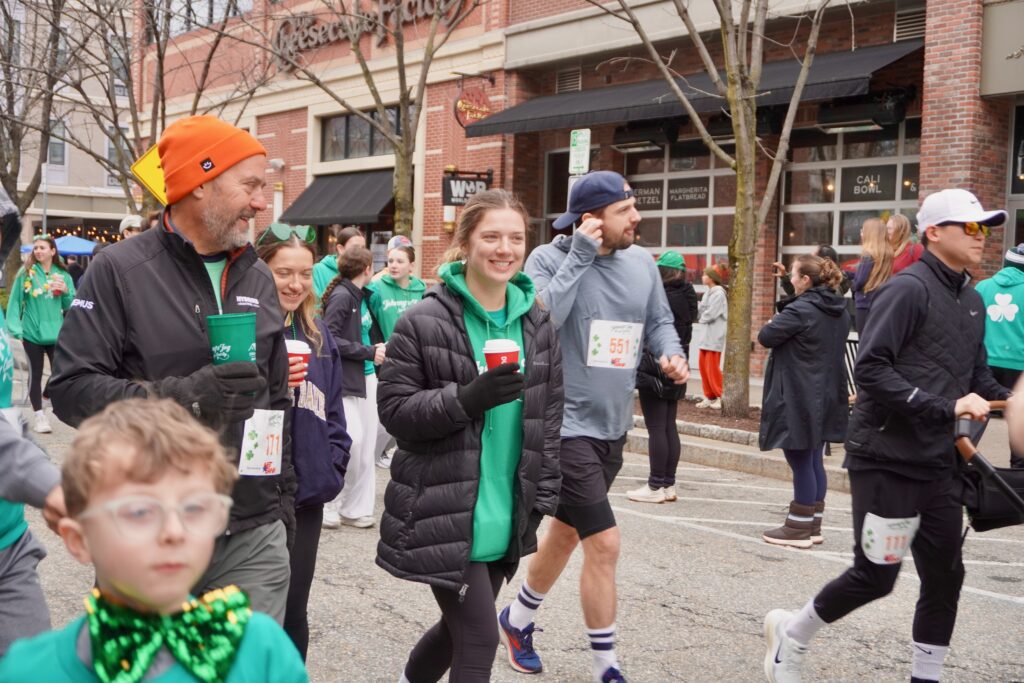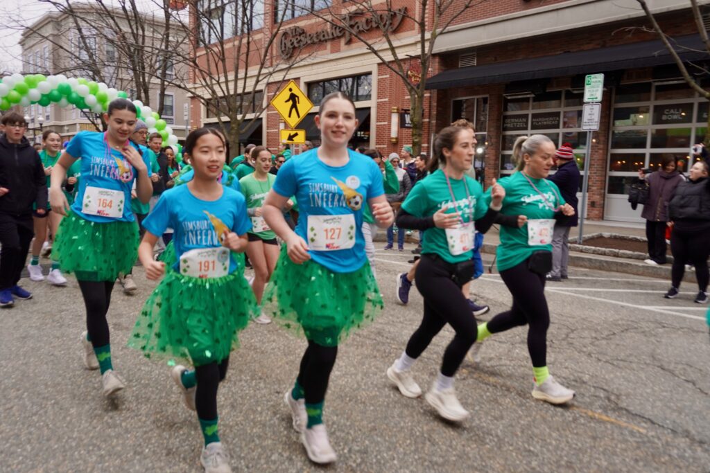 A sea of green crowded into Blue Back Square – and more than 1,000 lined up at the under the balloon arch to traverse 3.1 miles through West Hartford’s neighborhoods for the 15th annual event. Participants had the option of running or walking just for the experience or being timed.