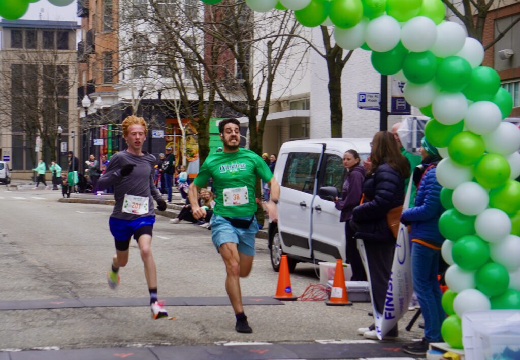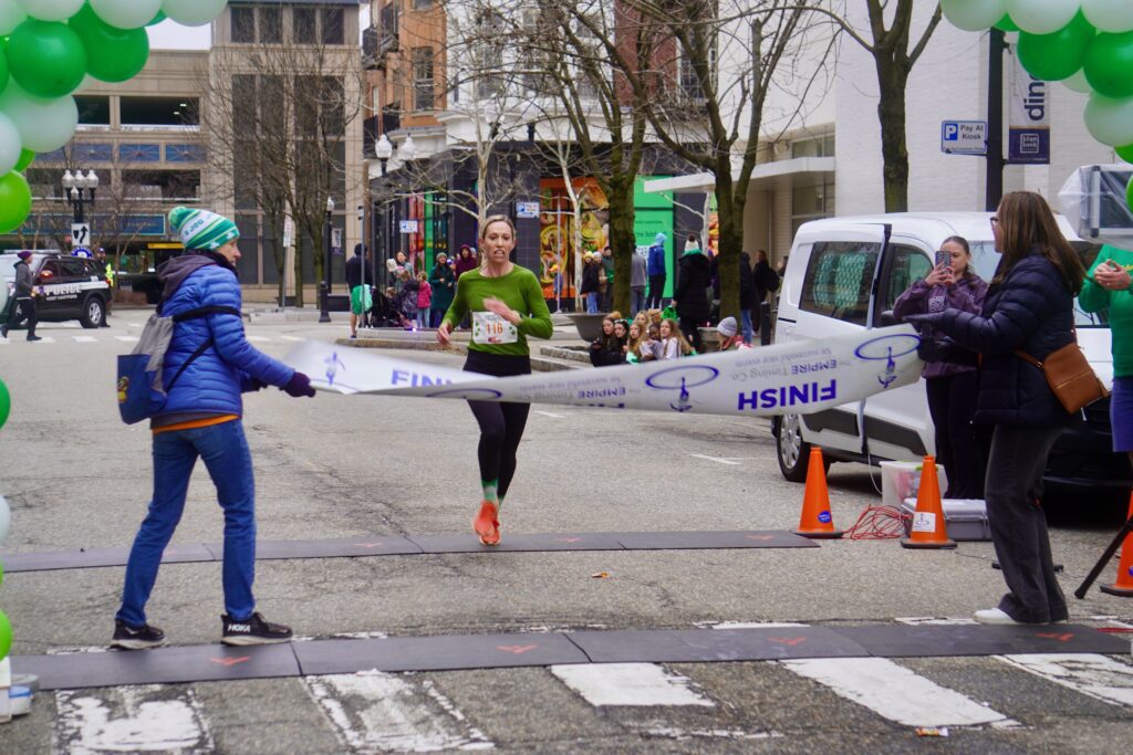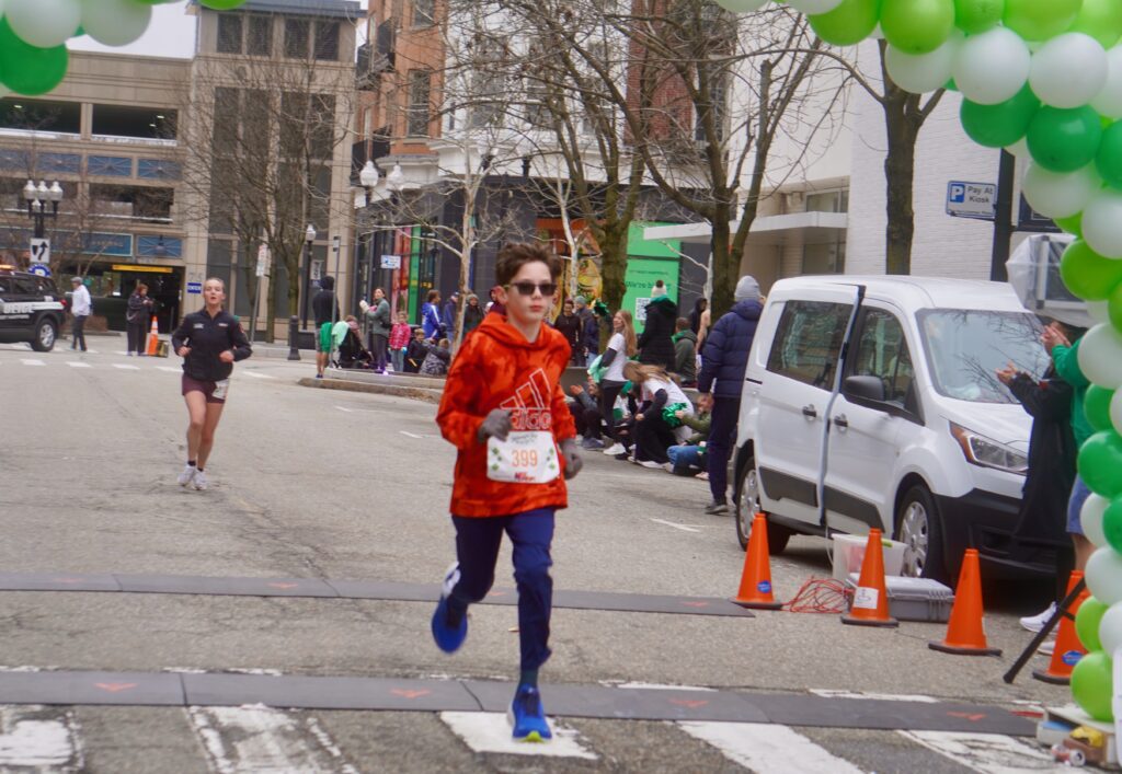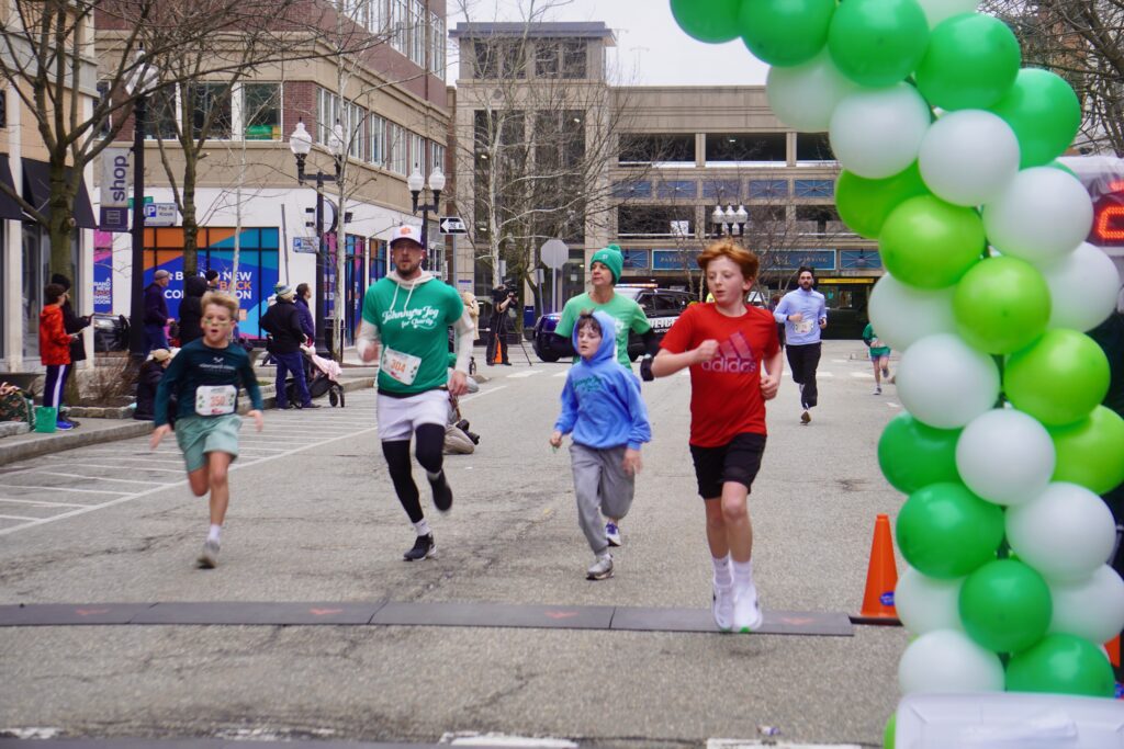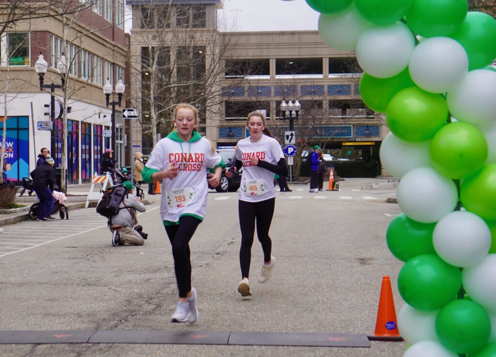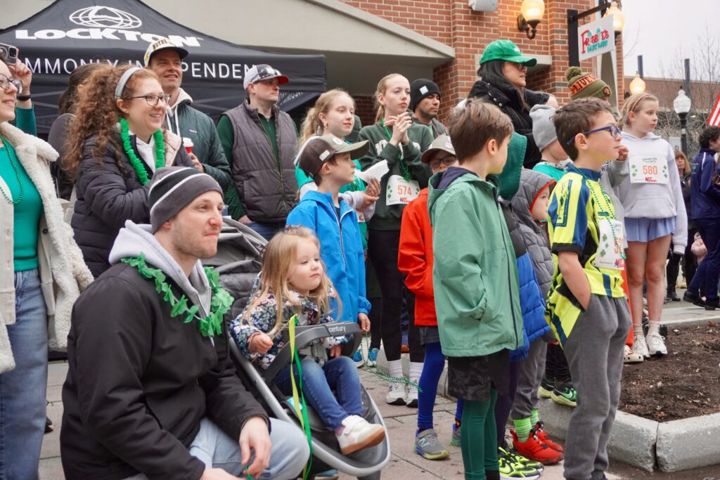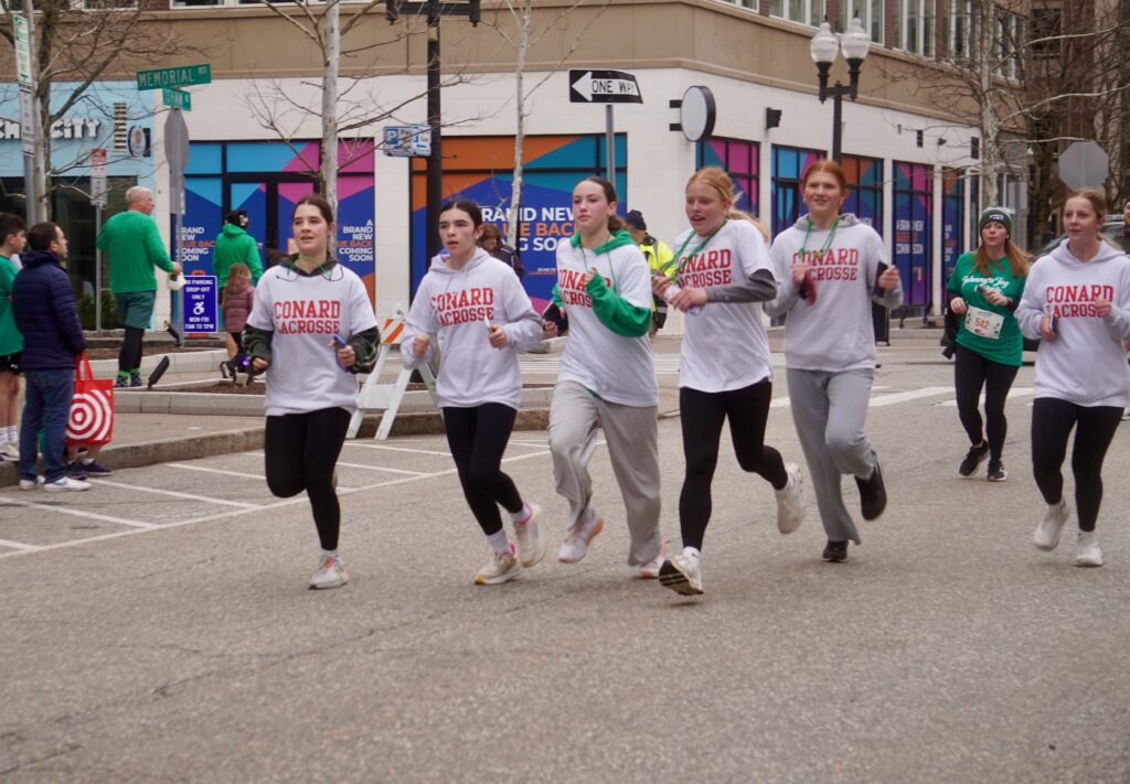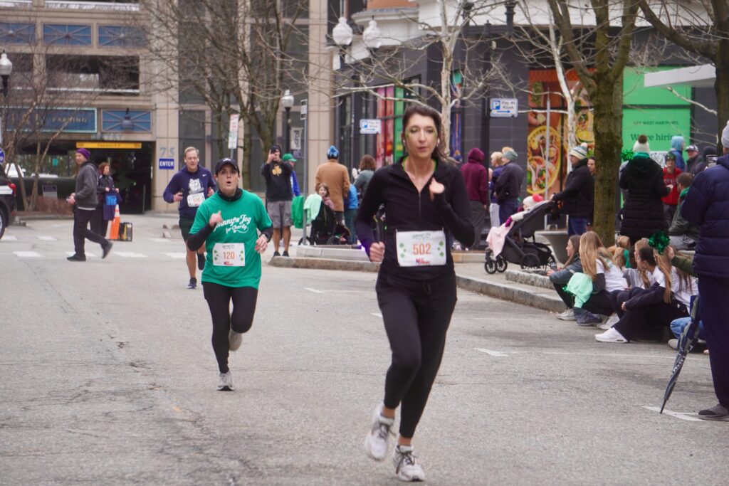 A sea of green crowded into Blue Back Square – and more than 1,000 lined up at the under the balloon arch to traverse 3.1 miles through West Hartford’s neighborhoods for the 15th annual event. Participants had the option of running or walking just for the experience or being timed.