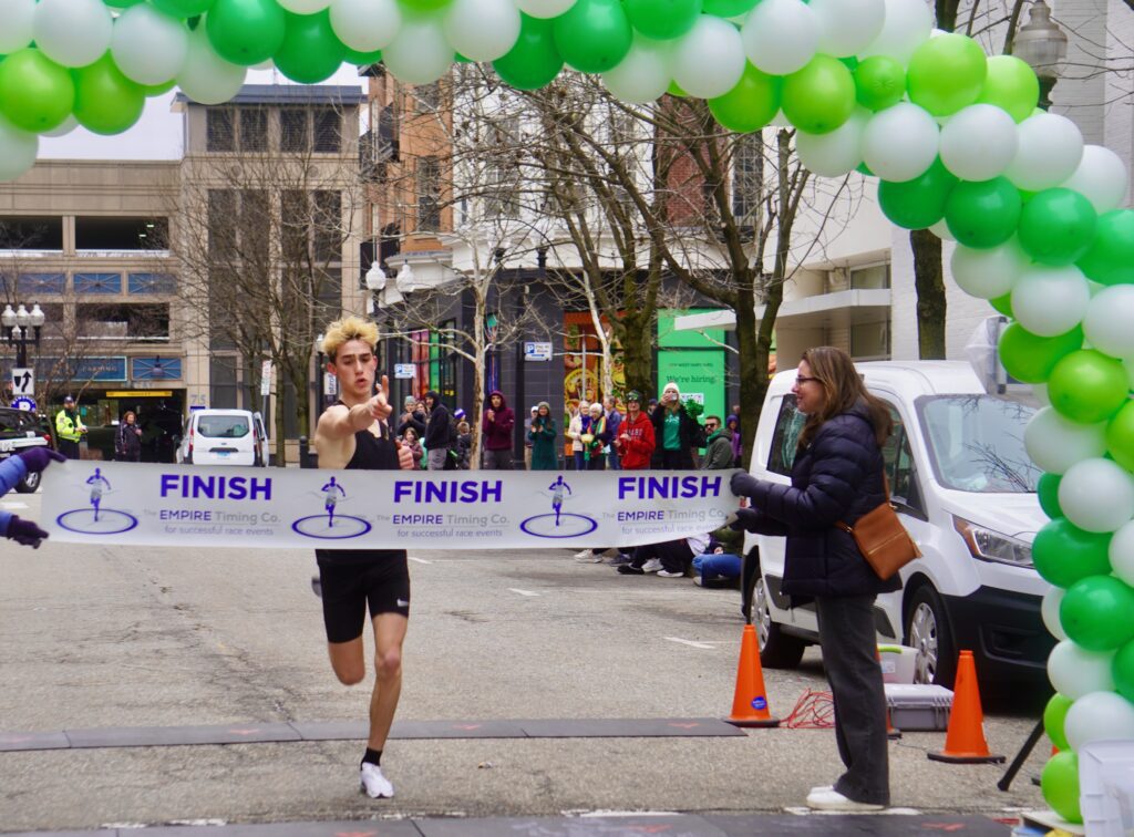 Fox Mace, 17, of West Hartford won the 5K race in a time of 16:04.53. Johnny’s Jog for Charity. March 22, 2026. Photo credit: Ronni Newton