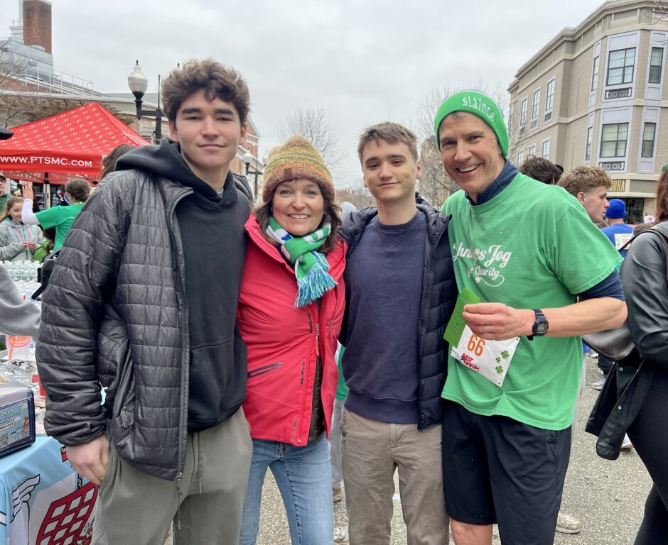 Johnny’s Jog founders and organizers (from left) Dan Moran, Laura Moran, Kelly Clark, Dan Clark. Johnny’s Jog for Charity. March 22, 2026. Photo credit: Ronni Newton