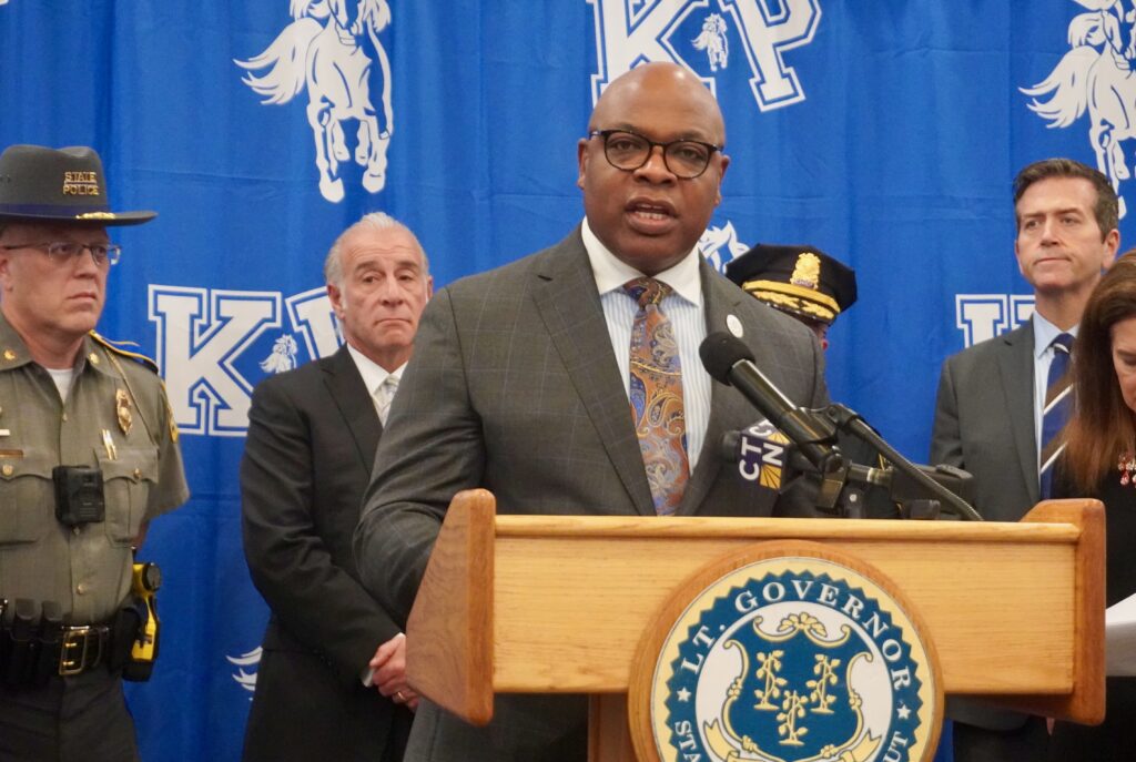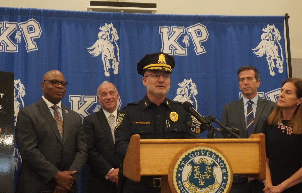 Press conference on Halloween safety at King Philip Middle School in West Hartford. Oct. 30, 2025. Photo credit: Ronni Newton