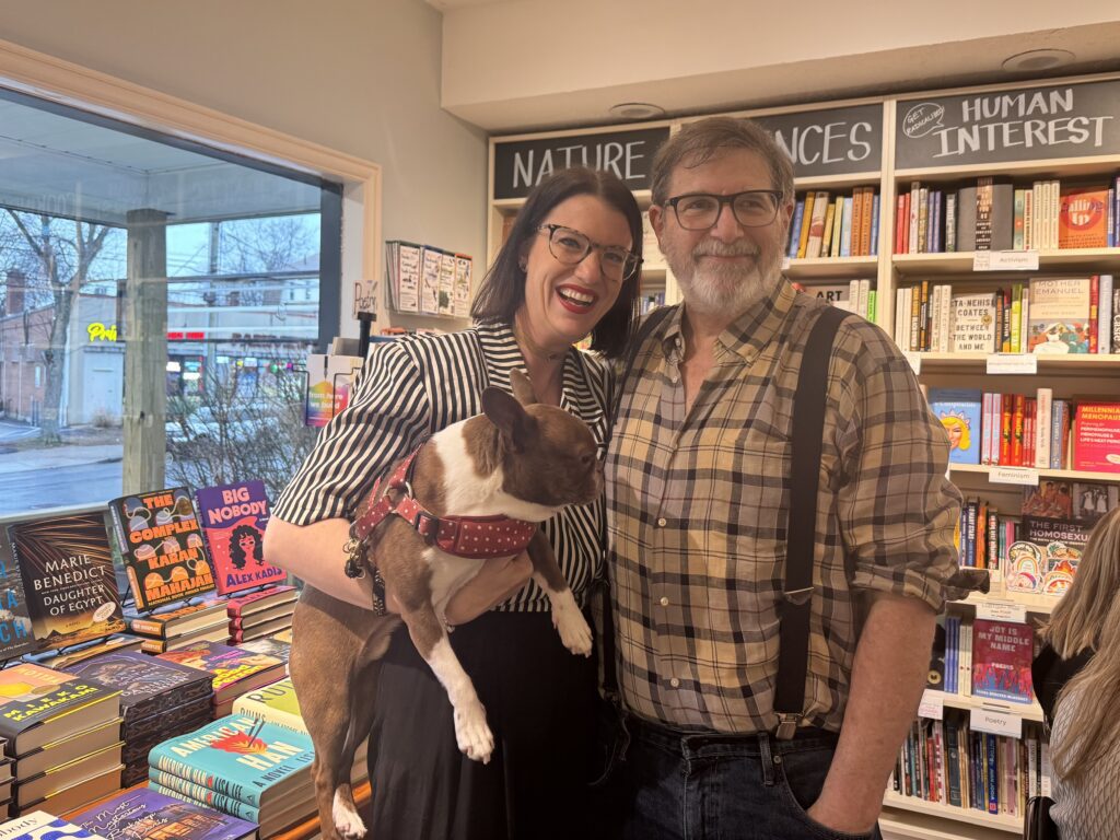 Carly Schwartz and her dog Nacho (who always accompanies her on book talks). Photo credit: Melissa Cole