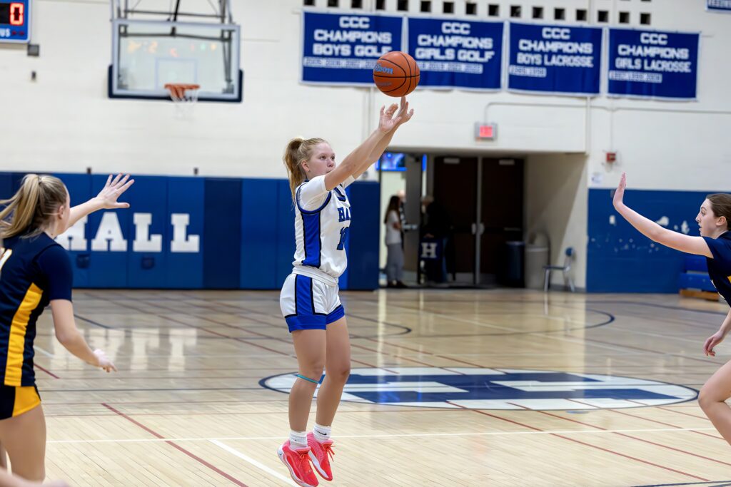 Berey later drew a foul to knot the score at 6-6, but Simsbury responded with timely shooting, as Blake Peterson and Brenna Riordan connected from beyond the arc to push the visitors ahead. Lynch again steadied Hall at the free-throw line, and Anya Leshem sparked a surge with a three-pointer followed by a 3-point play, briefly giving Hall the lead.